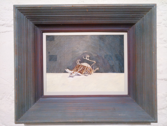 Bei den Gemälden von Heidi Baudrich entfalten sich auf der Leinwand Bilder, in denen Wesen erscheinen, die chimärenhaft eine Verbindung zwischen Natur und Mensch, männlich und weiblich und Gutem und Bösen suchen. Die Künstlerin Katrin Henschler hingegen sucht die Auseinandersetzung mit dem menschlichen Körper. Wie bei einem Linolschnitt schneidet oder reißt sie hierbei die Farbschichten auf und malt in altmeisterlicher Manier Bilder, die sich ikonengleich in unser Bildgedächtnis gebrannt haben: etwa die betenden Hände von Dürer. Als gebürtige Russin interessiert sich Elena Kozlova besonders für Schnee. Diesen versucht sie bildlich in mikroskopisch genauen Darstellungen greifbar zu machen.So entstehen malerische Tableaus, auf denen die Facettenvielfalt des gefrorenen Wassers zwischen Eisblumen, Schneeflocke, Eismatsch etc. in abstrakter Form faszinieren. Auch bei Marieken Matschenz schichten sich die Farbebenen, um Strich für Strich Körperlichkeit auf dem Papier entstehen zu lassen. Um Dinge, die im Verborgenen stattfinden, einen Ausdruck zu geben, zeichnet sie mit Farbstiften Dinge, die repräsentativ dafür stehen: ein Stuhl im Atelier, ein skelettierter Vogel, ein Traumbild…