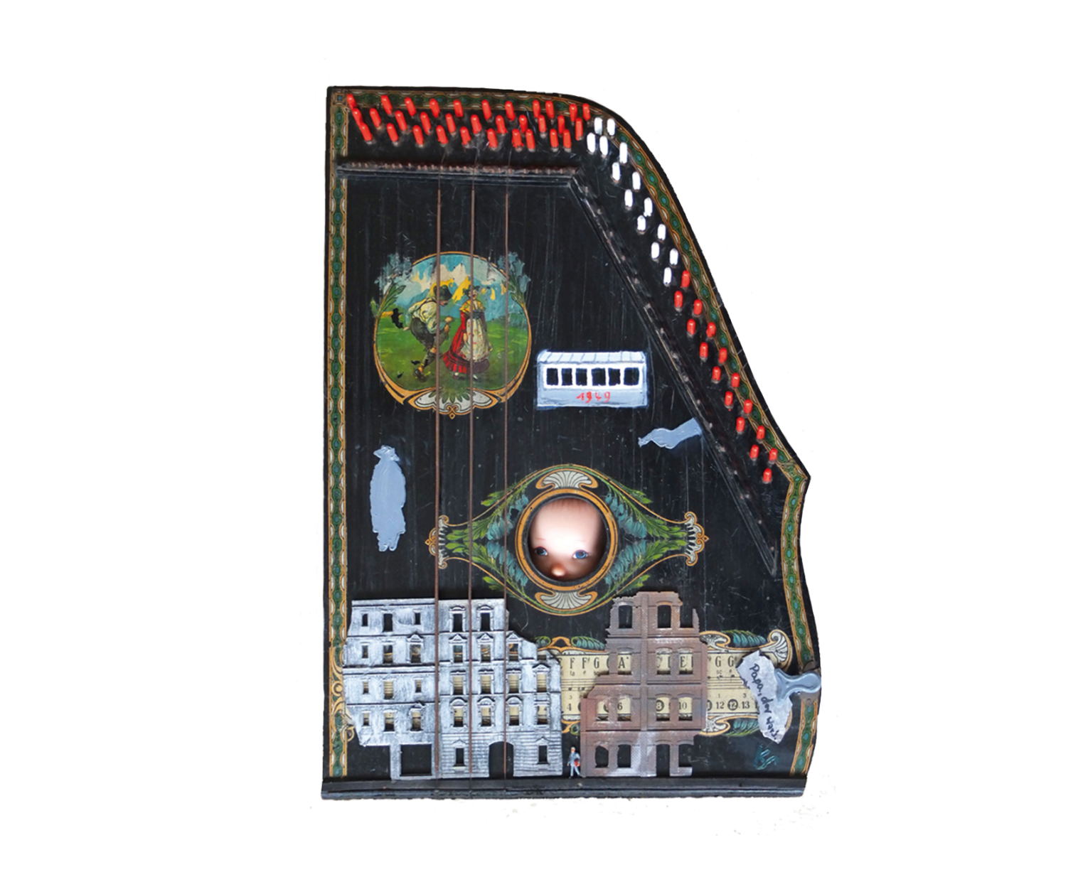 Bei Klaus Sommerfeld, der nach eigenen Angaben einen besonderen Hang zum Gesamtkunstwerk hat, und sowohl als Autor, Schauspieler und bildender Künstler aktiv ist, zeigt sich eine riesige Portion Ironie, Witz und Spaß an der bildhaften Umsetzungen. So zum Beispiel bei der Umschreibung des Ausspruches „Du bist genau meine Kragenweite“. Hier appliziert er verschiedene Hemdskragen, die offensichtlich einem gewissen Herrn Dr. Hembeck einst gehörten, und kleckst kunstvoll mit blauer Tinte auf diesem wohlkomponierten Kragenbild. So erzeugt er ein illustres Bild des ehemaligen Trägers, kombiniert dieses aber mit genauem Wissen der Kunstgeschichte, indem Bezüge auf das Action Painting von Jackson Pollock am Horizont aufflackern oder auch des Kubismus der frühen Avantgarde.