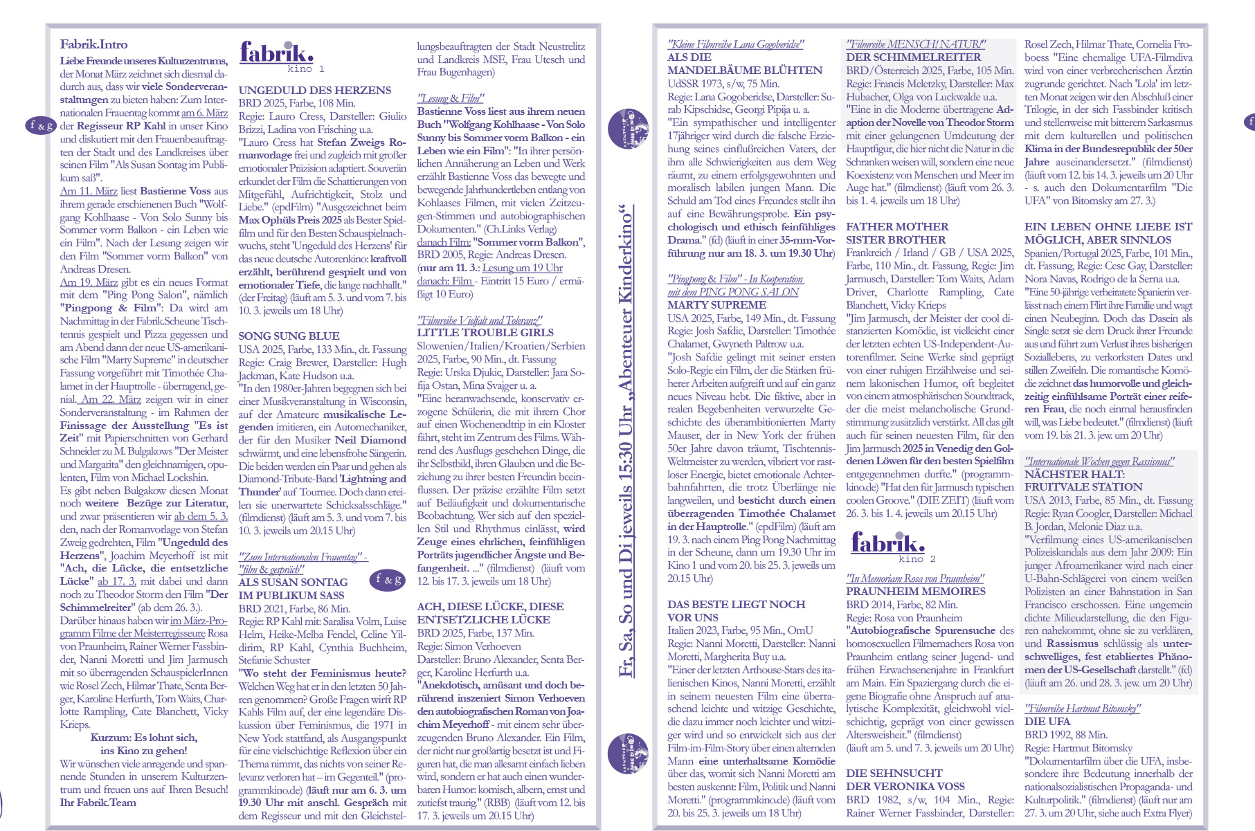 Fabrik.Kino 1: Kinotage: Montag u. Dienstag 6,50 Euro