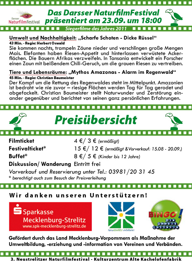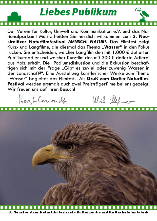 In diesem Jahr geht der Publikumsadler des "Neustrelitzer Naturfilmfestivals MENSCH! NATUR! " nach Österreich.