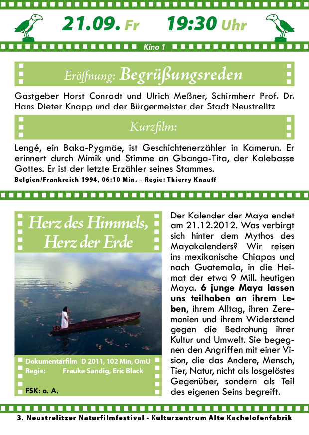 Jedenfalls mußten entsprechend dem Andrang für den Eröffnungsfilm "Herz des Himmels, Herz der Erde" beide Kinos der Alten Kachelofenfabrik geöffnet werden.
