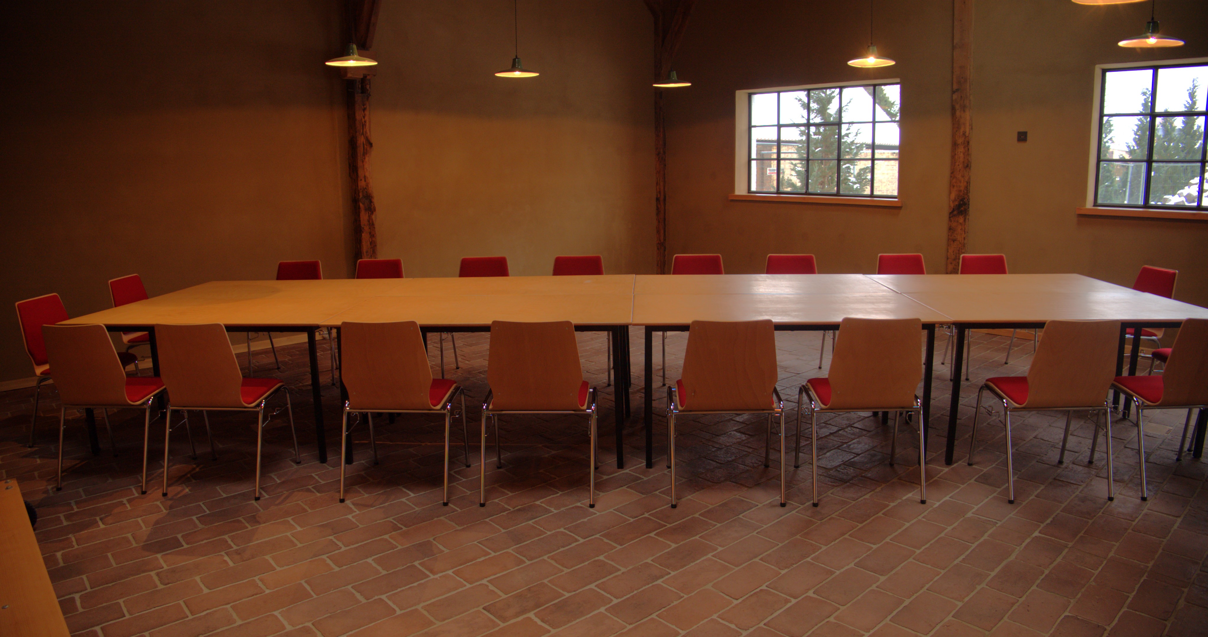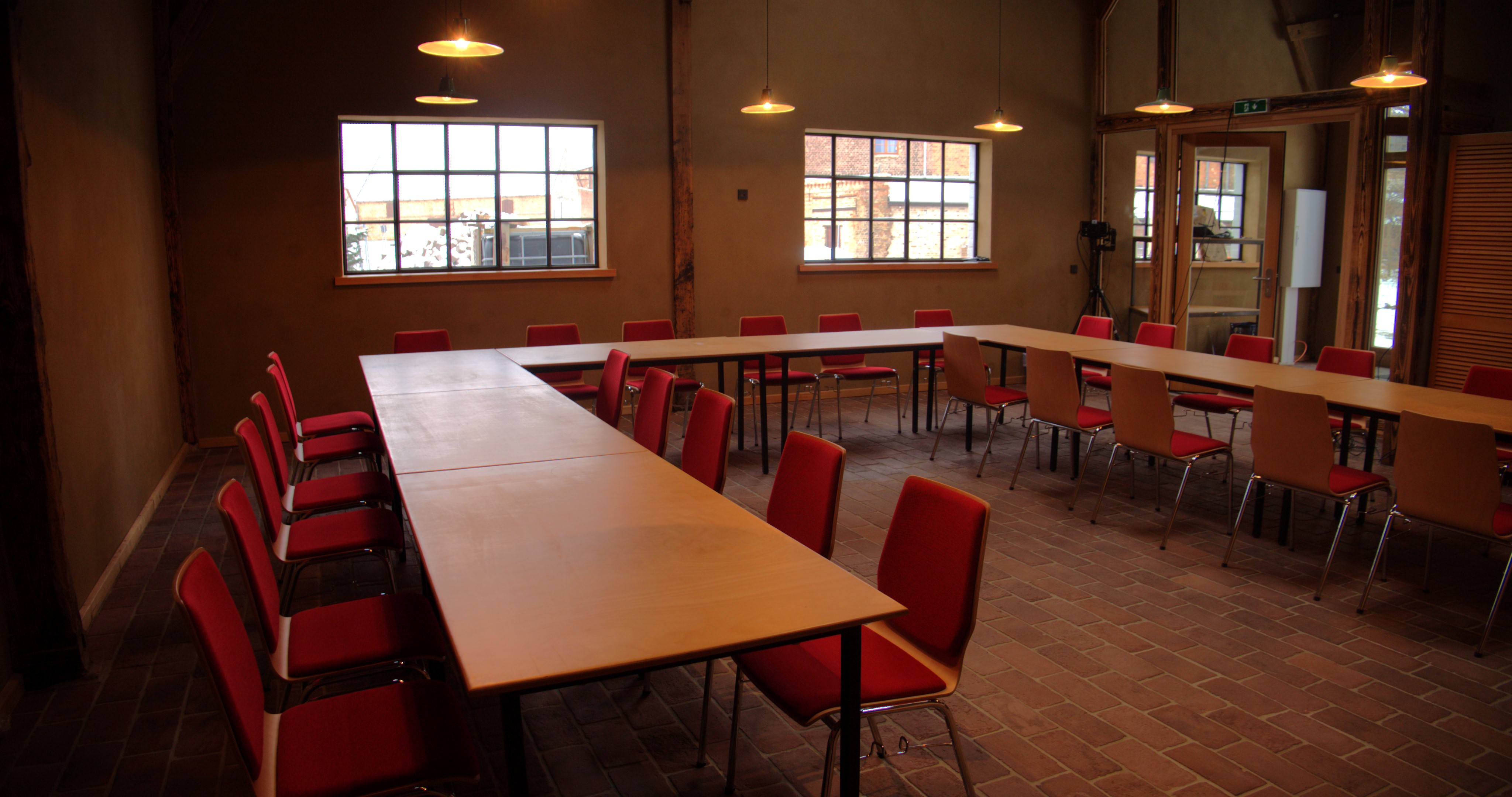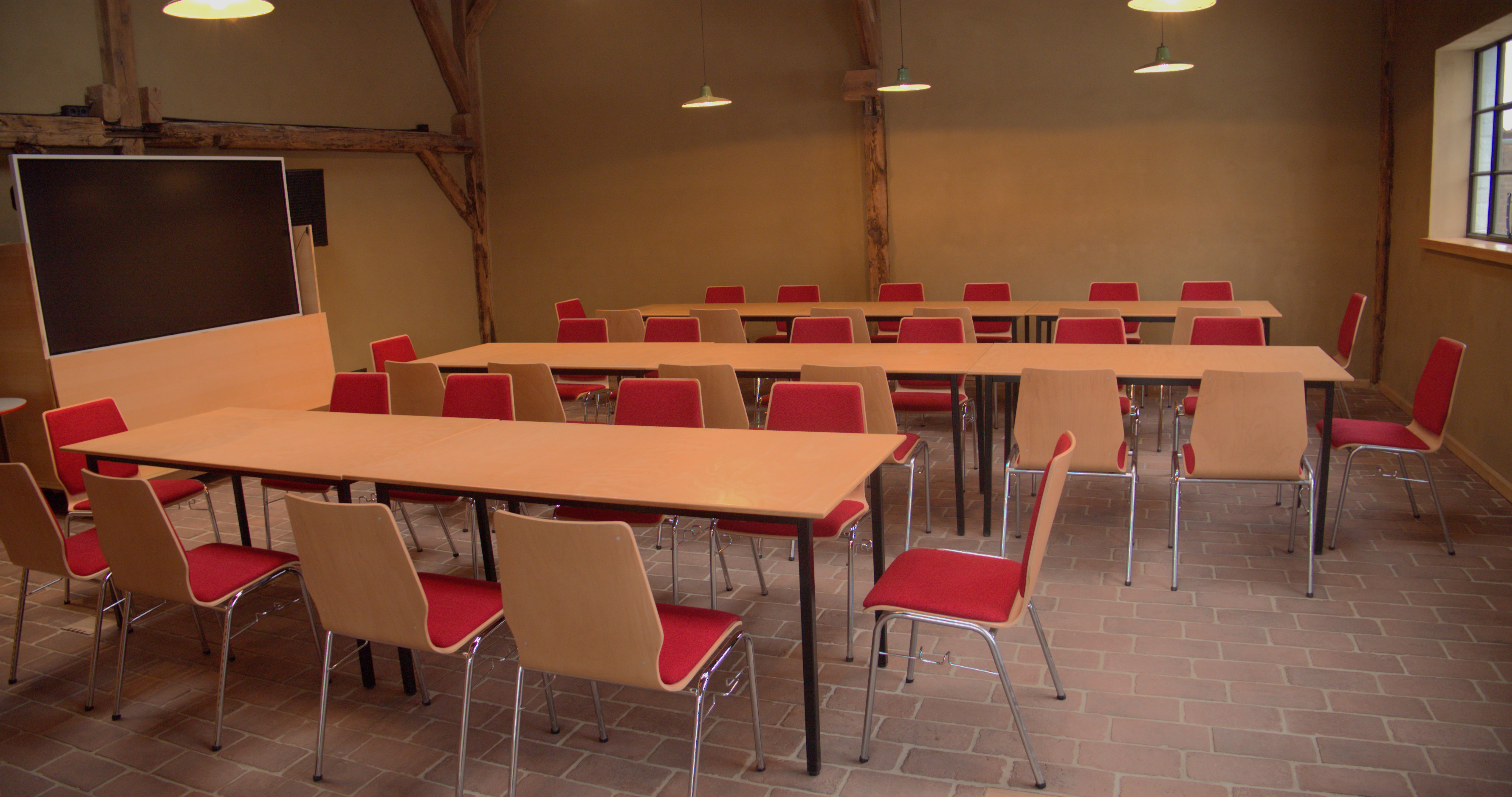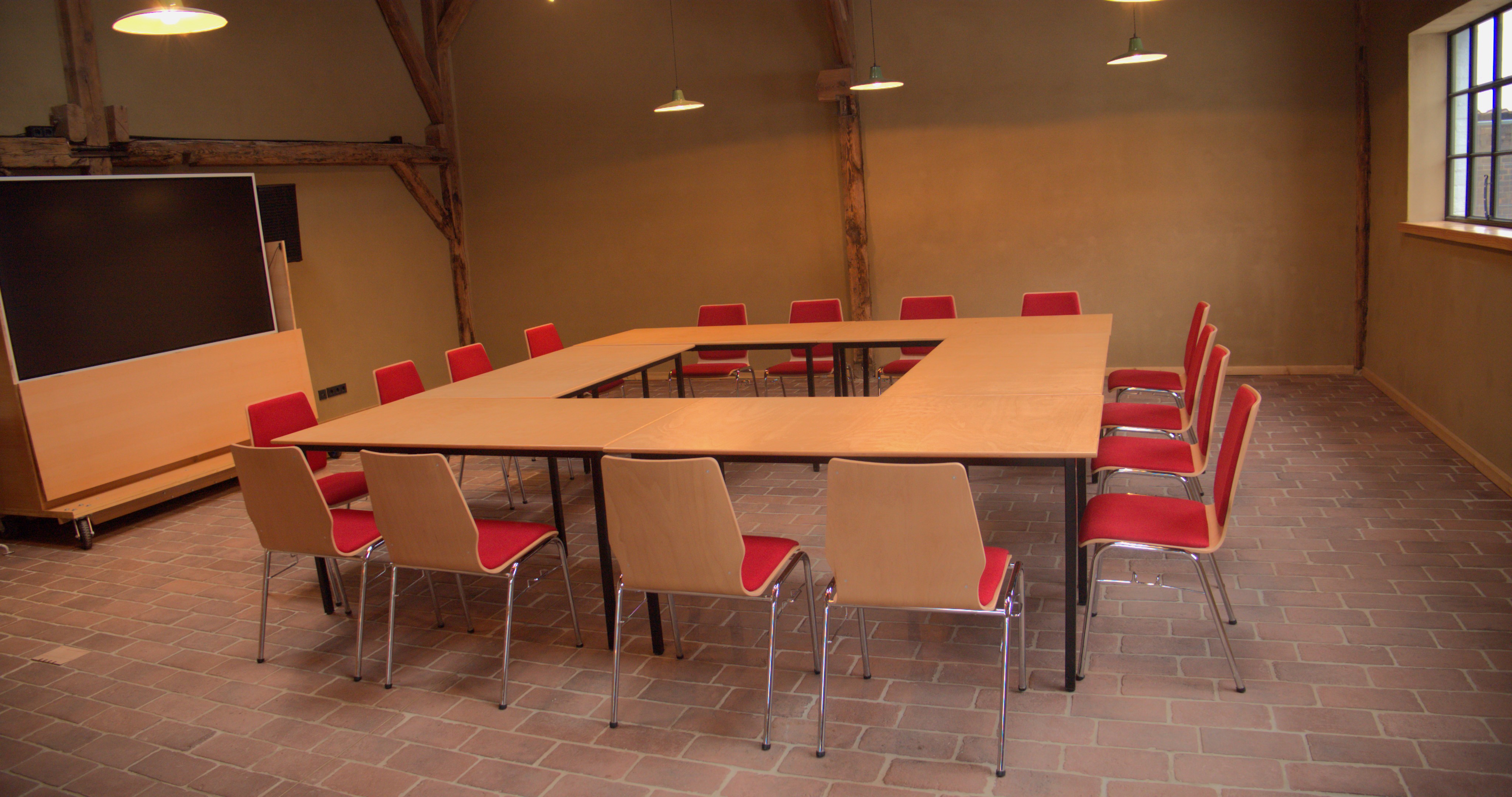 - bis 60 Personen (bei Reihenbestuhlung), zirka 35 Personen (bei parlamentarischer Bestuhlung), bis 30 Personen mit U-Form