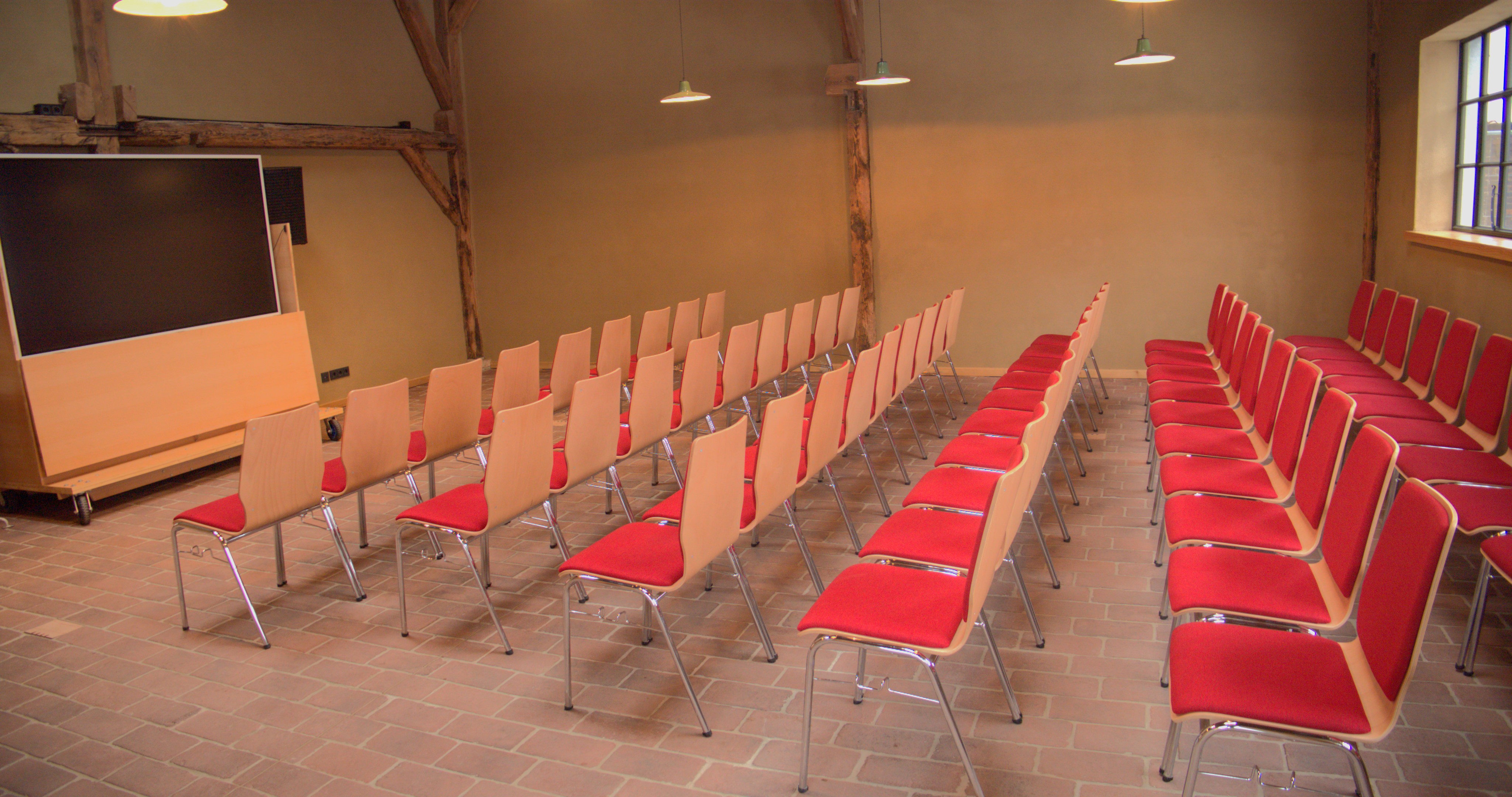 - technische Ausstattung: Leinwand und Beamer, Pinnwand, Whiteboard, Flipchart, Mikrofone, Bühne möglich, Rednerpult, Licht- und Tontechnik, WLAN, 4k Webcam inklusive Mikrofon, professionelle Kameratechnik für Ihren Livestream oder Ihr Online-Seminar, Yamaha Stage Piano (halbakustisch mit Hammermechanik)